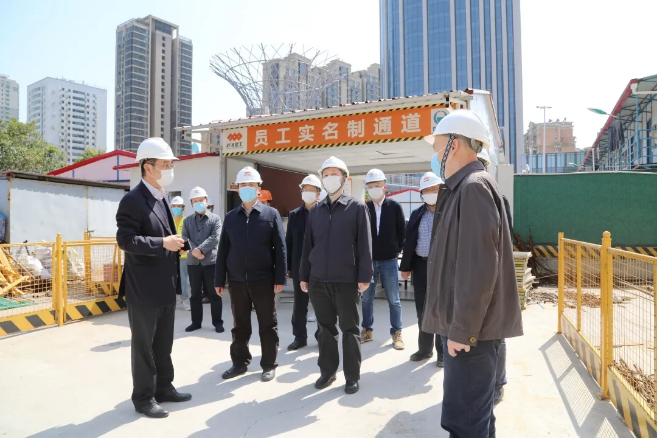 4月29日上午,武漢地鐵集團董事長、黨委書記張軍一行實地考察武漢建工集團承建的武漢市軌道交通8號線趙家條配套綜合開發(fā)項目一期工程,并召開座談會,了解項目疫情防控及復工復產(chǎn)情況。集團董事長、黨委書記應(yīng)志剛,集團總經(jīng)理、黨委副書記王火生,集團黨委副書記、紀委書記、總工程師王愛勛,股