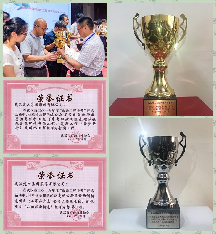 7月28日, 2016年度武漢市市政工程金獎表彰大會在武漢會議中心圓滿舉行,由路橋分公司申報的兩項工程喜摘武漢市“市政金杯金獎”一金一銀。